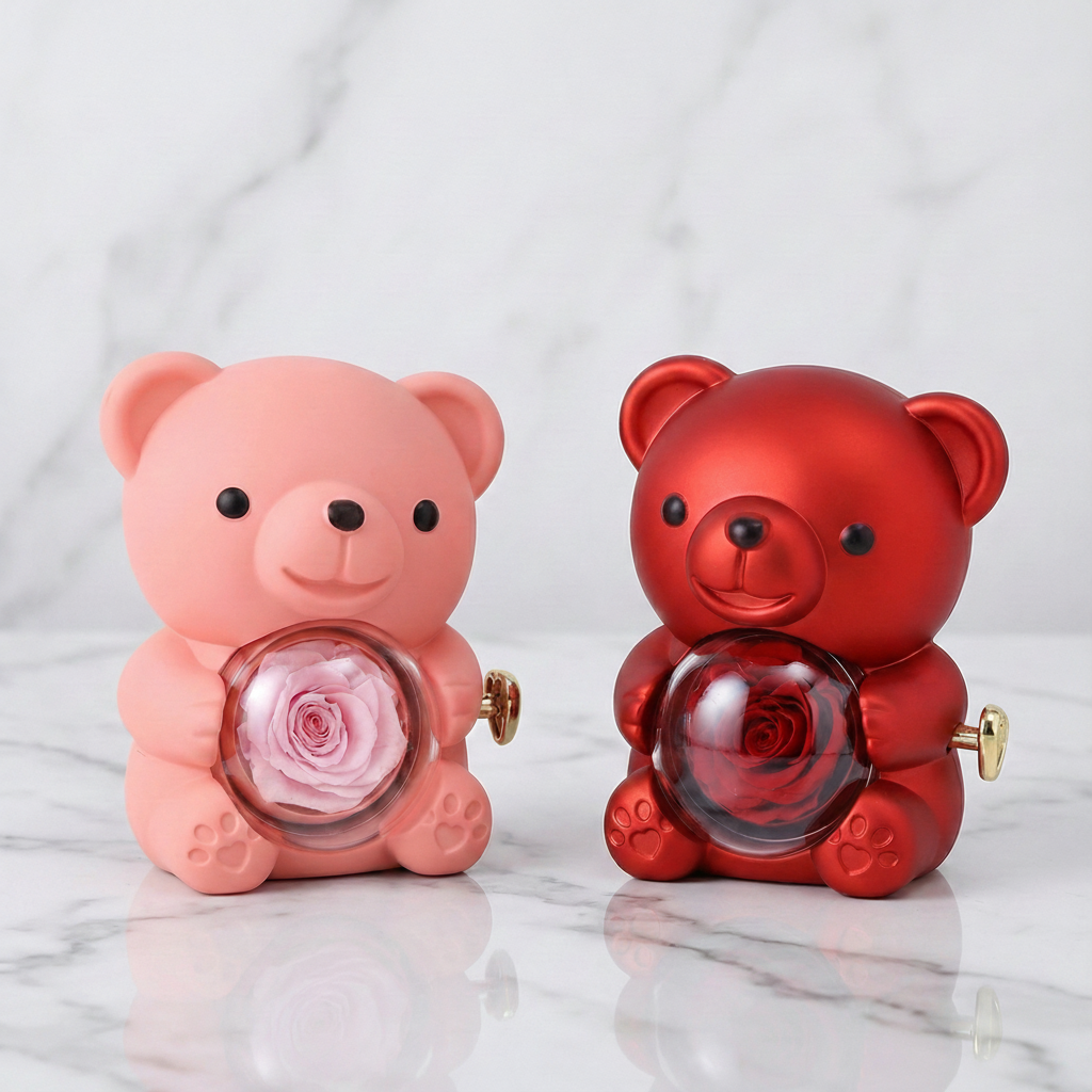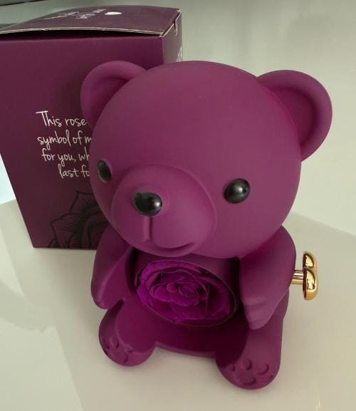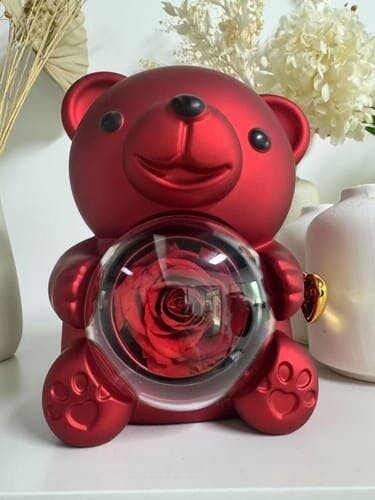 Hledáte způsob, jak vyjádřit své city něčím víc než jen slovy? Tento kouzelný medvídek v sobě ukrývá dvojnásobné překvapení. Na první pohled roztomilý dárek s věčnou růží se pouhým otočením mechanismu promění v nezapomenutelný okamžik.
